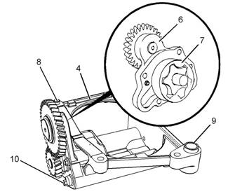4如有 必要, 從發(fā) 動(dòng)機機 油泵 的前 蓋組件 (6) 上 卸下螺 栓 (10)。 從 發(fā)動(dòng) 機機 油泵 (4) 上卸 下前蓋組件 (6)。