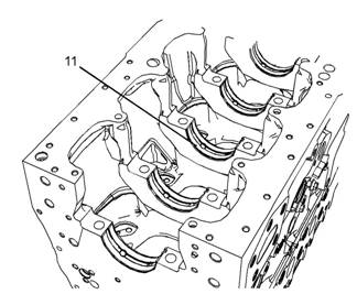 5將主軸瓦上軸瓦(11)安裝到缸體上。確保主軸瓦上軸瓦的定位凸舌座入缸體的槽中。