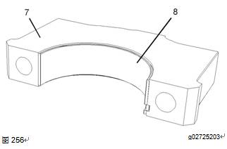 8使用清潔的發(fā)動(dòng)機機油潤滑止推墊圈(9)。將止推墊圈(9)安裝到缸體的6號主軸瓦中。