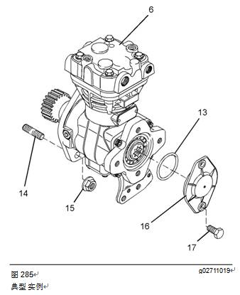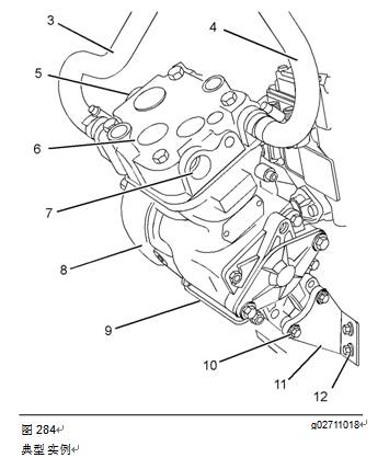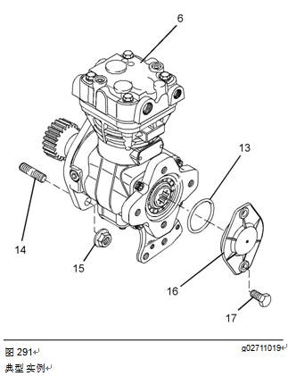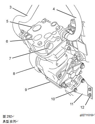 14.如果發(fā)動(dòng)機在空氣壓縮機后部配備一個(gè)液壓泵,安裝該液壓泵。有關(guān)正確的步驟,請參閱OEM信息。
