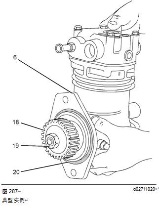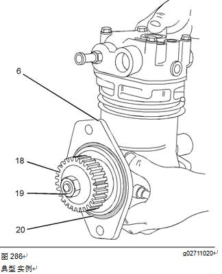 3如果發(fā)動(dòng)機在空氣壓縮機后部配備一個(gè)液壓泵,卸下該液壓泵。有關(guān)正確的步驟,請參閱OEM信息。