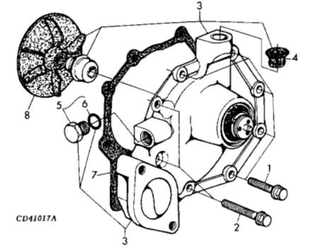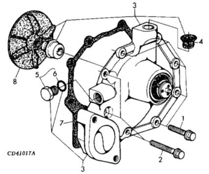 3 RE500734 WATER PUMP 1 X ASSY, INCL KEYS 4-6,8, (ALSO ORDER R123417