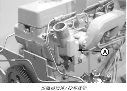 注意: 一些John Deere約翰迪爾強鹿柴油發(fā)動(dòng)機的恒溫器/ 冷卻歧管與缸蓋是一體的。
