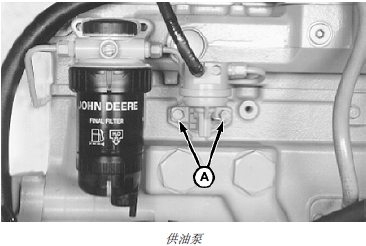 2. 對于渦輪增壓John Deere約翰迪爾強鹿柴油發(fā)動(dòng)機,斷開(kāi)渦輪增壓器進(jìn)油管。(參見(jiàn)第 010 章“斷開(kāi)渦輪增壓器進(jìn)油管”部分。)
