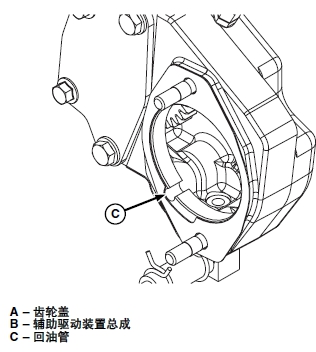 注意: 確保襯墊槽口與輔助驅動(dòng)空穴的回油管 (C) 對齊。