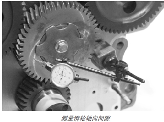 如果惰輪軸向間隙不符合技術(shù)規格的要求,檢查惰輪、惰輪軸和止推墊圈是否磨損。(參見(jiàn)本章后面的“測量惰輪襯套和軸”部分。)