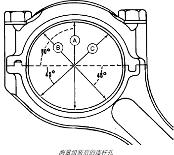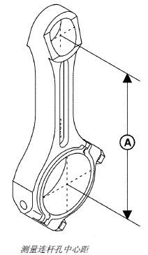 9. 測量連桿活塞銷(xiāo)孔中心到曲軸孔中心的尺寸 (A),并與給定的技術(shù)規格比較。如果測量值不符合技術(shù)規格要求,應更換連桿。