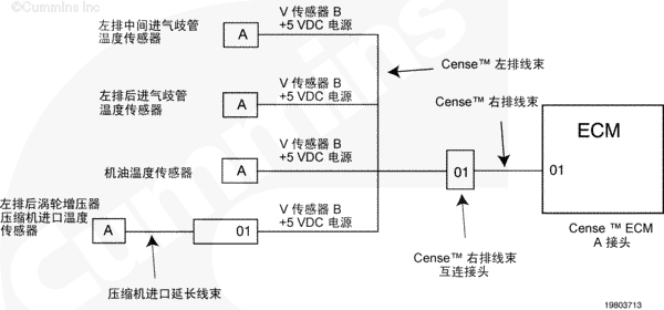 右排后進(jìn)氣歧管溫度傳感器電路向 CENSE™ ECM 提供右排后進(jìn)氣歧管空氣溫度信號。