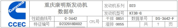康明斯發(fā)動(dòng)機排放數據單 | |