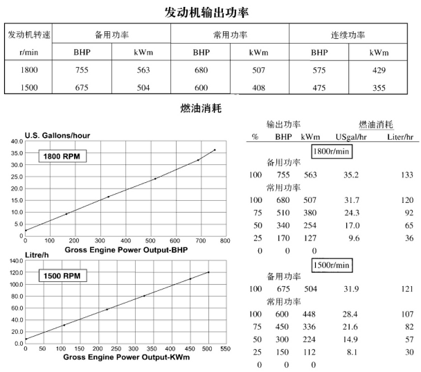 性能數據 備用功率標定 常用功率標定 kW(BHP)@1500r/min(50Hz) 448(600) 403(540) 燃油消耗 L/h(U.S.gal./h) 107(28.2) 97(25.5) 空燃比 24.9 25.2 排氣流量 L/h(CFM) 1489(3155) 1345(2850) 排氣溫度°C(°F) 532(990) 524(975) 排放數據 單位:均為g/BHP.hr 成分 備用功率標定 常用功率標定 HC 0.42 0.28 NOX 9.83 8.91 CO 2.21 1.72 PM 0.18 0.17 SO2 0.59 0.59 CO2 480 480 N2 2900 2900 O2 370 380 H2O 180 180 試驗條件 試驗過(guò)程中,將發(fā)動(dòng)機穩定控制在標定轉速(±25r/min),標定功率(±2%)范圍內,使得壓力、溫度和排放數據穩定。 燃油規范:硫(重量) 含量0.2%、十六烷值為42 —50的ASTM D975 No.2 柴油 燃油溫度:37℃(99°F) ±5℃(9°F) [燃油泵進(jìn)口] 進(jìn)氣溫度:25℃(77°F) ±5℃(9°F) 大氣壓力:100kPa (29.53inHg) ±3.4kPa (1inHg) 濕 度:NOX測量值按75喱H2O/lb.干空氣進(jìn)行修正 | |