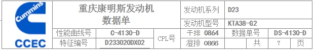 康明斯發(fā)動(dòng)機排放數據單 | |