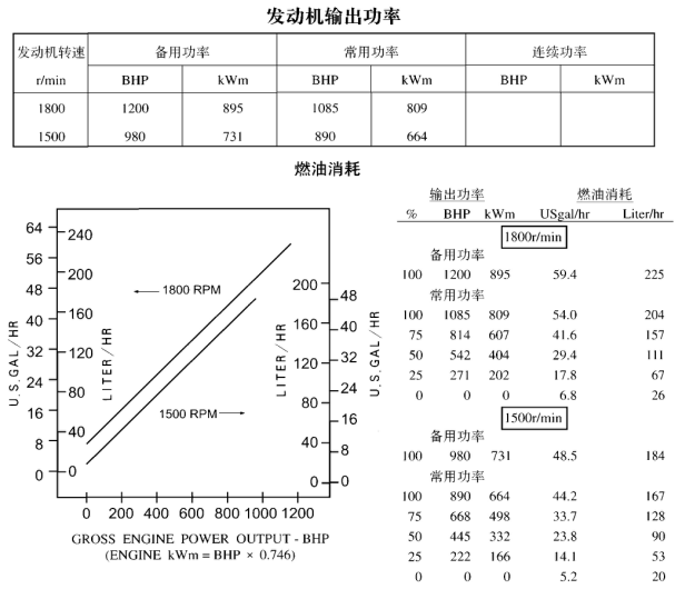 性能數據 備用功率標定 常用功率標定 kW(BHP)@1800r/min(60Hz) 895(1200) 809(1085) 燃油消耗 L/h(U.S.gal./h) 225(59.4) 204(54.0) 空燃比 30.3 30.5 排氣流量 L/h(CFM) 3679(7795) 3290(6970) 排氣溫度°C(°F) 502(935) 485(905) 排放數據 單位:均為g/BHP.hr 成分 備用功率標定 常用功率標定 HC 0.10 0.10 NOX 12.50 11.50 CO 1.30 1.10 PM 0.11 0.12 SO2 0.62 0.62 CO2 510 510 N2 3700 3700 O2 590 600 H2O 180 180 試驗條件 試驗過(guò)程中,將發(fā)動(dòng)機穩定控制在標定轉速(±25r/min),標定功率(±2%)范圍內,使得壓力、溫度和排放數據穩定。 燃油規范:硫(重量) 含量0.2%、十六烷值為42 —50的ASTM D975 No.2 柴油 燃油溫度:37℃(99°F) ±5℃(9°F) [燃油泵進(jìn)口] 進(jìn)氣溫度:25℃(77°F) ±5℃(9°F) 大氣壓力:100kPa (29.53inHg) ±3.4kPa (1inHg) 濕 度:NOX測量值按75喱H2O/lb.干空氣進(jìn)行修正 | |