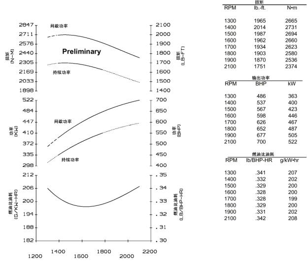 所有的數據是基于康明斯發(fā)動(dòng)機帶燃油泵、水泵、機油泵、空濾器和消聲器時(shí)獲得的,而不包括交流發(fā)電機、空壓機、風(fēng)扇、其它選用設備和被驅動(dòng)的部件。