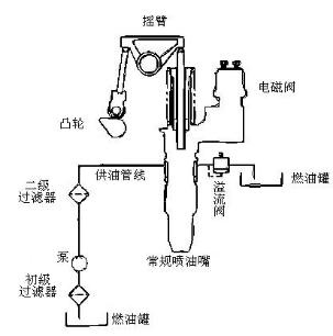 ECM通過(guò)變化的信號控制單體泵的噴油量。單體泵在電磁閥供電時(shí)噴油。ECM向單體泵電磁閥提供一個(gè)105VDC電壓信號,這個(gè)電壓信號激活電磁閥。通過(guò)控制發(fā)動(dòng)機正時(shí)和電壓持續時(shí)間,ECM能夠控制噴油時(shí)間和噴油量。
