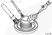 在工作溫度時(shí)(使用 15W-40 機油),如果壓降大于 172 kPa [25 psi],則表示濾清器堵塞。 識別濾清器堵塞的原因。核實(shí)滿(mǎn)足康明斯公司維護保養指南。 采用下述步驟檢查有無(wú)可能的油液污染。參考第 7 節中的步驟 007-083。 如果濾清器堵塞,更換機油和機油濾清器。 有關(guān)機油濾清器堵塞的更詳細資料,參見(jiàn)下述公告。參考《Cummins® 發(fā)動(dòng)機機油和機油分析建議》(公告號 3810340)。 | |||||||||||||||||||||||||||||||||||||||||||