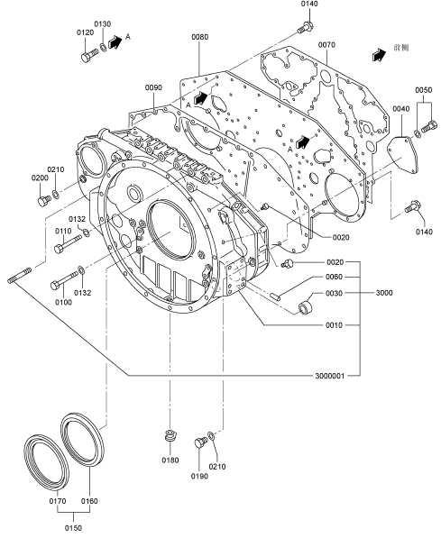 此目錄里使用的用于安裝的螺栓中,帶墊圈螺栓在記事欄里表示為"B/W"。(零部件名稱(chēng):BOLT、
