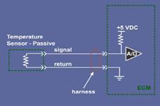 The figure below shows the temperature sensor working principle. With the increase of temperature, thermal resistance value is reduced, so that the signal voltage reduction. According to the temperature sensor working principle, can use the inspection method inspection of thermistor temperature sensor. By comparing the actual measured resistance values and parameters in the table of the resistance value, you can determine whether the normal work of the temperature sensor in.