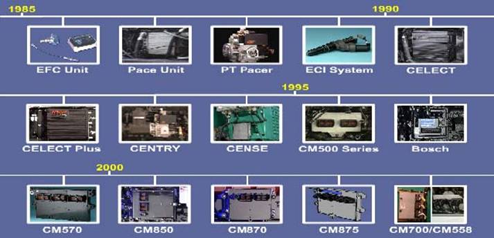 由于電控柴油機燃油系統的多樣性,康明斯有多種不同型號的 ECM用在不同型號的發(fā)動(dòng)機上。下圖列出了不同年代在康明斯發(fā)動(dòng)機上使用的 ECM。這些 ECM具有不同的零件號,在定購時(shí)請注意。