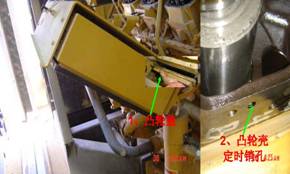 拆卸:12缸、凸輪軸蓋1、凸輪殼定時(shí)固定銷(xiāo)孔2