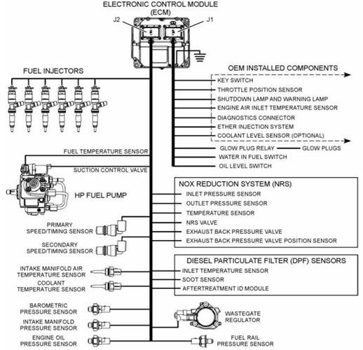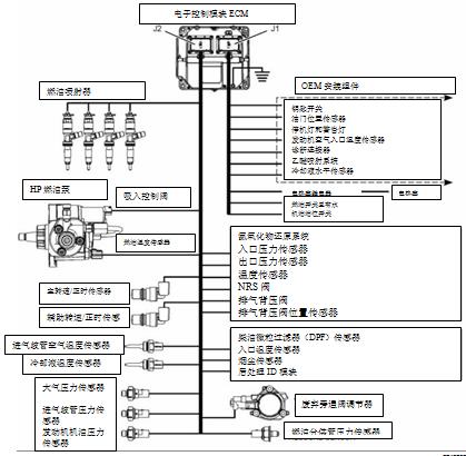 發(fā)動(dòng)機有一個(gè)電子控制系統。這個(gè)系統也監視著(zhù)柴油微粒過(guò)濾器(DPF) 和氮氧化物還原系統(NRS)。