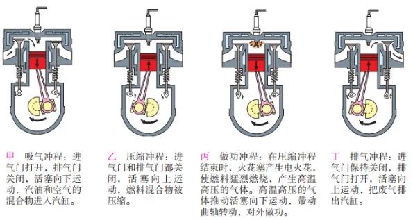 ③兩種發(fā)動(dòng)機運轉的第一循環(huán),都必須靠外力使曲軸旋轉,才能完成進(jìn)氣和壓縮行程;做功行程開(kāi)始后,做功能量?jì)Υ嬖陲w輪內,以維持循環(huán)繼續進(jìn)行。