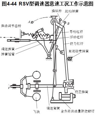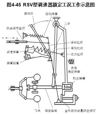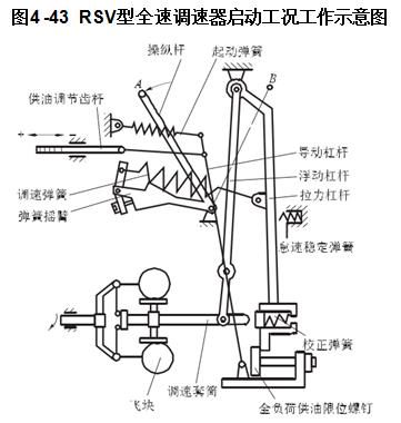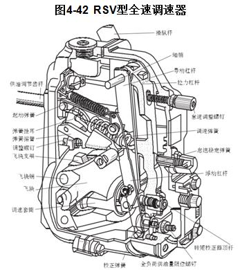 圖4 - 42所示為國產(chǎn)A型噴油泵上采用的RSV型全速調速器,與RAD型兩速調速器基本相同,但為了實(shí)現柴油機工作轉速范圍內的全速調節控制,因而增設了以下結構: