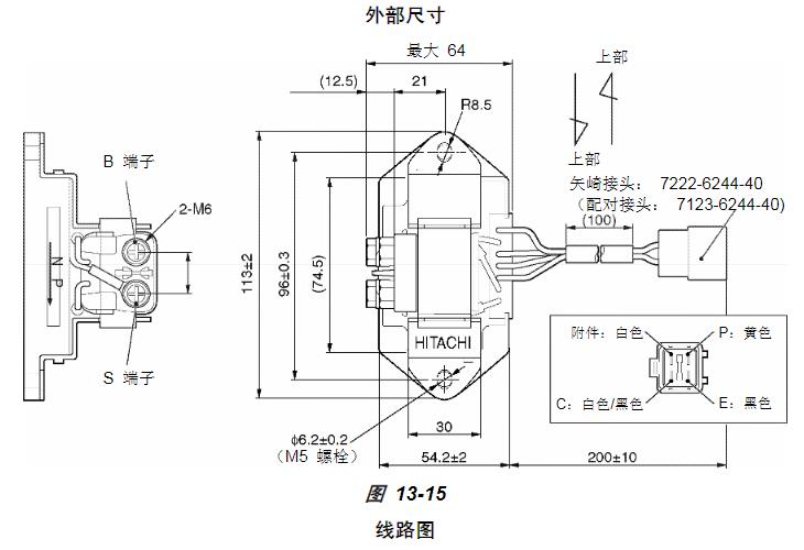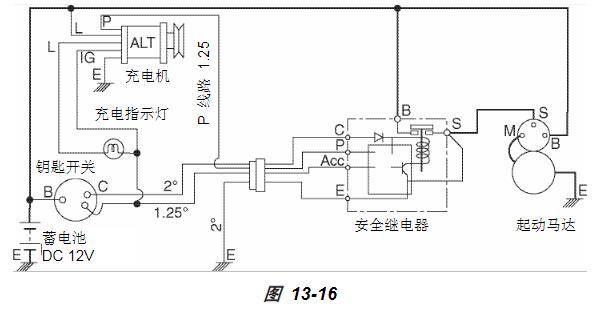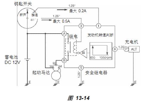 日立安全繼電器日立安全繼電器隨配備日立充電機(零件號 129136-77200)的發(fā)動(dòng)機一起使用。充電機應有一個(gè) P 端子。但是,這種安全繼電器只能兼容于不低于 12V/60A 的日立充電機。它與其它充電機不兼容。當充電機轉速超過(guò) 1400 ±120 min-1(環(huán)境溫度下)時(shí),安全繼電器會(huì )切斷起動(dòng)馬達電路。例如,當充電機皮帶輪與曲軸皮帶輪的傳動(dòng)比為 0.6 時(shí),起動(dòng)馬達會(huì )在發(fā)動(dòng)機轉速達到 840 ± 72 min-1時(shí)自動(dòng)關(guān)閉。此后,意外操作鑰匙開(kāi)關(guān)不能使起動(dòng)馬達通電。接合后,安全繼電器會(huì )在充電機轉速達到不高于 498 min-1(環(huán)境溫度下)時(shí)斷開(kāi)。例如,當皮帶輪傳動(dòng)比為0.6 時(shí),發(fā)動(dòng)機轉速會(huì )達到不高于 299 min-1。由于普通發(fā)動(dòng)機的低怠速轉速至少約為 800 min-1,安全繼電器起效一次后會(huì )在所有發(fā)動(dòng)機轉速范圍下繼續起效。
