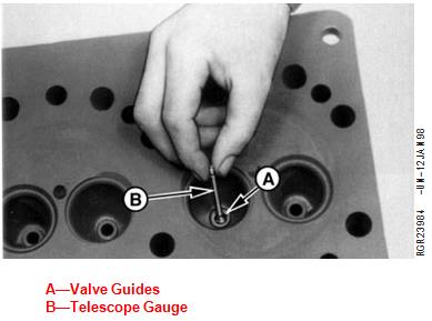 測量約翰迪爾氣門(mén)導管使用伸縮規(B)和千分尺測量氣門(mén)導管(A)的磨損情況。