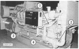 1)通向卡特CAT發(fā)動(dòng)機汽缸組前部的水管(2)冷卻劑引入口(3)油冷卻器(4)水泵