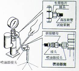 ②用試驗用的高壓軟管連接噴油器和試驗泵。