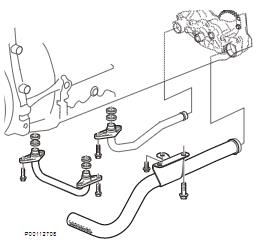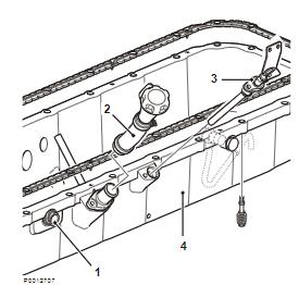3 僅適用于 D13B-A/C/G/H/K/L,D13C2-A,D13C4-A(雙渦輪)將廢氣門(mén)閥回油管從油底殼上拆下。