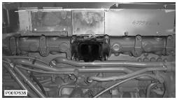 20 僅適用于 D13B-A/C/G/H/K/L,D13C2-A,D13C4-A(雙渦輪增壓器)安裝隔熱罩,但不要完全緊固螺栓。檢查 Y 形管是否固定到固定器內。注意 隔熱罩可能需要在某個(gè)方向上移動(dòng)以固定 Y形管螺栓。因此,隔熱罩螺栓在安裝 Y 形管時(shí)才緊固。圖示為帶有雙渦輪增壓器的發(fā)動(dòng)機。
