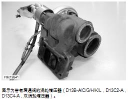 19 僅適用于沃爾沃volvo D13B-A/C/G/H/K/L,D13C2-A,D13C4-A(雙渦輪增壓器)安裝渦輪增壓器和廢氣門(mén)閥輸油軟管。用一個(gè)電纜結將廢氣門(mén)閥輸油軟管固定到渦輪增壓器回油管上。