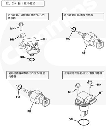 康明斯ISX、QSX 和 ISZ/QSZ13發(fā)動(dòng)機壓力和溫度傳感器、進(jìn)氣歧管、渦輪增壓器進(jìn)氣/壓力傳感器,進(jìn)氣歧管壓力/溫度傳感器,發(fā)動(dòng)機燃料調節器出口壓力/溫度傳感器,壓縮機進(jìn)氣濕度/壓力/溫度傳感器。