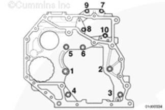 注: 一些發(fā)動(dòng)機裝備一個(gè)附加螺栓(圖中未顯示)。按順序最后擰緊此螺栓。