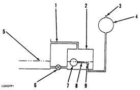 (1)前倉排氣孔 (2)調節器 (3)排氣孔 (4)油源 (5)發(fā)動(dòng)機的油盤(pán) (6)閥門(mén) (7)漂浮物 (8)旋軸 (9)閥門(mén)座