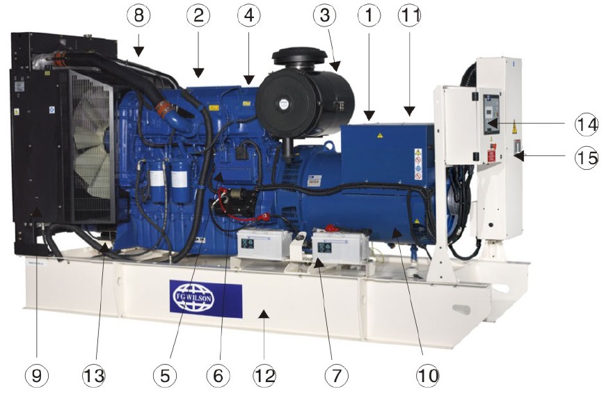 發(fā)電機組的組成(三個(gè)部分:A、引擎,B、發(fā)電機,C、控制裝置)