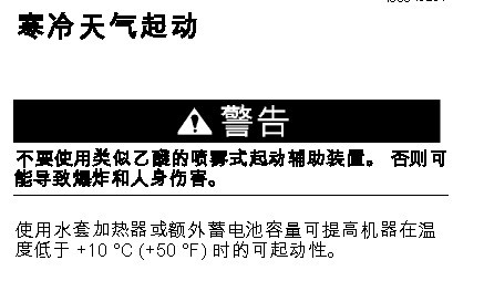 ( 4 )冷卻系未加防凍液的車(chē)輛、尤其在嚴寒低溫下,要邊放水,邊加熱水,直至機體溫度合適為止( Perkins 發(fā)動(dòng)機在缸體溫度 15 ℃ 以上可順利啟動(dòng));