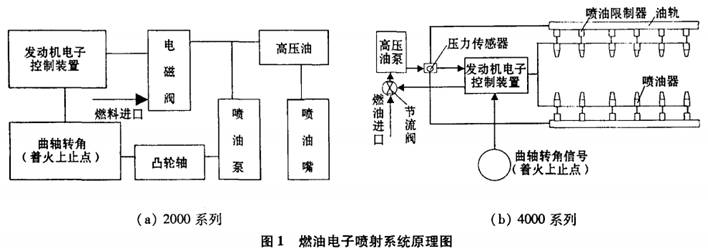 德國奔馳MTU2000系列柴油機采用電磁閥控制的電子噴射系統,其工作原理如圖i(a)所示¨’。它是一個(gè)電磁