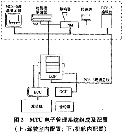 德國奔馳MTU電子管理系統由柴油機控制單元( FCU)、柴油機監測單元( EMU)、機旁控制箱(LOP)和一套裝在柴油機上的傳感器組成。
