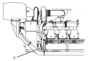 在4012-61A TRG發(fā)動(dòng)機上為測量進(jìn)氣歧管空氣壓力,特工具(A)連接至位置(X)。承載操作發(fā)動(dòng)機。