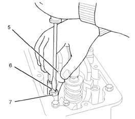 6松開(kāi)進(jìn)氣門(mén)橋上的鎖緊螺母(7)。
