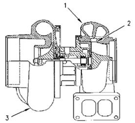 1檢查渦輪有無(wú)異物造成的損壞。如有損壞應確定異物的來(lái)源。更換渦輪增壓器(3)。如果沒(méi)有損壞請進(jìn)行步驟2。