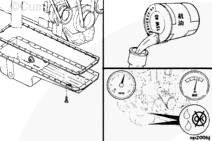 安裝新密封墊和油底殼。擰緊油底殼放油螺塞。扭矩值: 88 n.m [65 ft-lb]用干凈的15W-40機油加注發(fā)動(dòng)機。運轉發(fā)動(dòng)機直到達到 80°C [180°F] 的溫度 ,檢查冷卻液或機油是否泄漏。