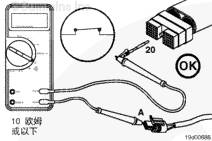 萬(wàn)用表 必須顯示為閉路(10 歐姆或更?。?。