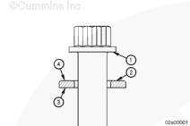 如果懷疑缸蓋螺栓的螺栓長(cháng)度有問(wèn)題,檢查缸體頂部與螺紋孔中的第一個(gè)螺紋之間的距離。如果距離約為 44 mm [1.75 in],必須安裝長(cháng)度為 203 mm [8 in] 的螺栓。
