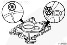 對于配備非唇形曲軸前油封的發(fā)動(dòng)機,使用細砂布去除所有拉痕和毛刺。如果曲軸前端密封表面損壞,沒(méi)有可用的承磨襯套。