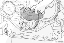若要拆下密封件,從前齒輪室上撬下前齒輪室蓋。在分離前齒輪室密封件時(shí)小心不要損壞前齒輪室蓋。 |