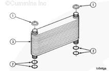 從康明斯QSK45 發(fā)動(dòng)機上拆下 3 個(gè)機油冷卻器芯 (2) 或從  QSK60  發(fā)動(dòng)機上拆下 4 個(gè)機油冷卻器芯 (2)。從每個(gè)冷卻器芯 (2) 上拆下 4 個(gè) O 形密封圈 (1),并將其廢棄。