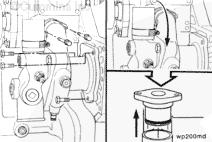 注: 安裝齒輪室殼體時(shí)當心 不要損壞油底殼密封墊。